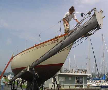 ![]() Jacqueline climbs to the top of the mast (sort of) ![]()
