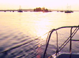 The area south-east of the island is used as a day anchorage, and it is very popular with sailors who wish to stop for a swim on those hot windless afternoons. In fact, an instant community of several dozen boats can suddenly pop up in this area, with many rafted together, as their crews take a break to swim, gam, barbeque, and generally enjoy the summer life. Moreover, the small beach on the south-east corner of the island can be put to good use by sailors who are somehow overcome by the urge to leave their boats and go ashore.