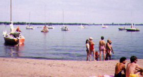 an abandoned turn-of-the-century project to harness power from the fast moving waters of the Deschenes Rapids. By comparison, the establishment of the Nepean Sailing Club is a relatively recent development. in 1980, the current site of the Nepean Sailing Club was nothing more than a thin strip of neglected land between Carling Avenue and a shallow corner of Lake Deschenes. The breakwater, boat compound, and park land which surround the NSC clubhouse are all new and were put in place with landfill. The result is a a club which compares favourably with any other in North America.