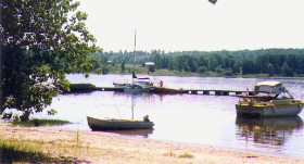 The Chats Falls Dam and power generating station can be seen in the distance from the Quyon Dock. Although this stretch of water was largely ignored by sailors for many years, it is one of the more interesting and challenging parts of the Ottawa River.